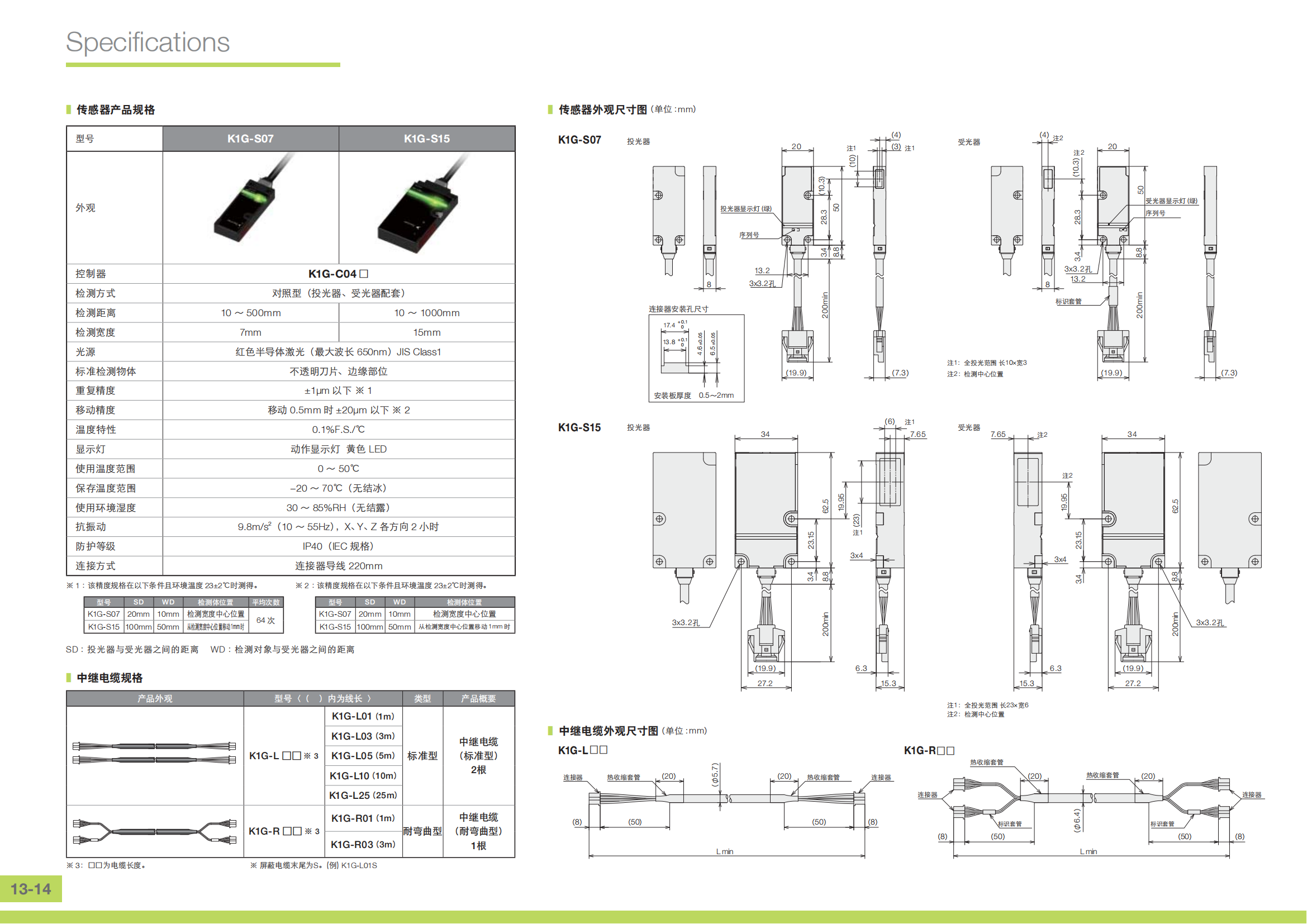 检测方式为透过型,标准检测物体为不透明刃状边缘,检测距离10~500mm,检测幅宽7mm。